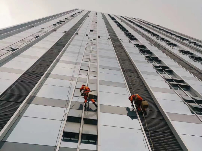 成都高空外墻防水進行中... 看兄弟伙檢查的仔細的。